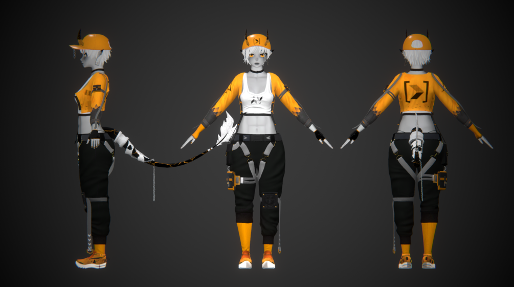Techwear inspired Girl model; I'm not very Unity Heavy so don't expect crazy animations and stuff, Just a simple model/avatar for the looks. Also i'm good at naming if you couldn't tell. :)